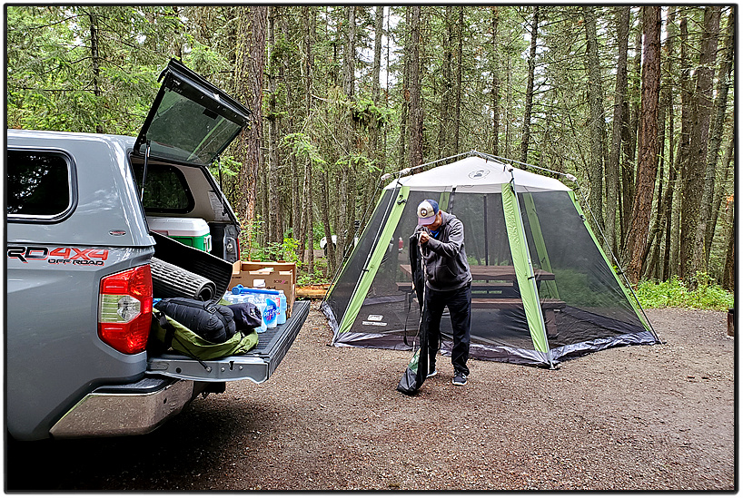 트랜스 캐나다 하이웨이(Trans-Canada Highway)라 불리는 1번 하이웨이를 타고 호프(Hope)까지 달린 후에 5번 하이웨이로 갈아타곤 캠루프스까지 내처 달렸다. 파란 하늘과 하얀 구름이 적당히 섞여 있어 날씨는 좋은 편이었다. 캠루프스로 들어설 때 잠깐 소나기가 내린 것을 제외하면 말이다. 캠루프스에서 부식을 구입하곤 캠핑장이 있는 폴 레이크 주립공원(Paul Lake Provincial Park)으로 향했다. 준사막 지형에 속하는 캠루프스에서 조금 벗어났다고 주위에 나무도 보이고 푸른 초원도 나타났다. 폴 레이크 로드를 달려 캠핑장에 도착했다. 비어 있는 사이트 하나를 차지했다. 예약도 없이 왔건만 큰 어려움없이 자리를 잡은 것이다. 먼저 텐트부터 치고 식탁엔 모기장 텐트를 설치했다. 후배는 픽업 트럭의 화물칸을 정리해 잠 잘 공간을 만들었다.