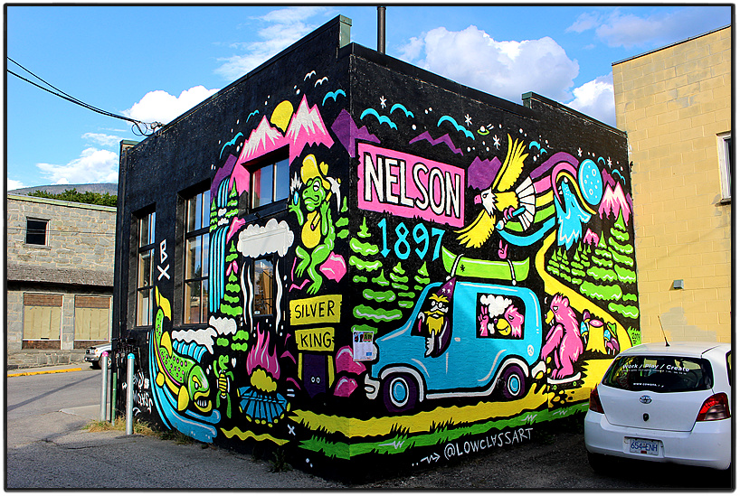 캐나다 로키 산맥 아래에 있는 엘크포드(Elkford)까지 찍었으니 이제 쿠트니 산골마을 순례를 시작했던 레벨스톡(Revelstoke)으로 돌아간다. 엘크포드를 나와 3번 하이웨이와 6번 하이웨이를 달려 도착한 곳은 설컥 산맥(Selkerk Mountains)의 품에 안겨 있는 넬슨(Nelson)이었다. 두 도시는 400km나 떨어져 있어 거의 다섯 시간이 걸렸다. 넬슨은 인구가 11,000명에 가까운, 웨스트 쿠트니(West Kootenay) 지역에선 가장 큰 도시다. 1886년 이 지역에서 은이 발견되면서 실버 러시(Silver Rush) 덕으로 탄생한 도시라서 당시의 번영을 보여주는 고색창연한 헤리티지 건물들이 많았다. 베이커 스트리트(Baker Street)와 버논 스트리트(Vernon Street)를 중심으로 느긋하게 돌아다니며 넬슨의 도심 풍경에 빠져들었다. 이 산골마을에서 고풍스러운 건물 외에 내게 매력적으로 다가온 건 건물 외벽에 그려진 벽화였다. 도시 전체가 예술 마을을 표방하고 있다는 듯, 어느 골목을 가나 수준 높은 벽화가 나타나 나그네 눈길을 사로잡은 것이다. 이는 넬슨에서 매년 개최하는 국제 벽화 축제에 출품했던 작품이라 했다. 이런 곳이라면 여기서 한두 달 살아보고 싶다는 생각이 들기도 했다.