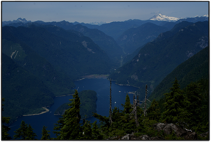 번젠 호수(Buntzen Lake) 동쪽에 위치한 이글 리지(Eagle Ridge)에 해발 1,280m의 이글 피크(Eagle Peak)와 그보다 조금 낮은 1,250m 높이의 딜리-댈리 피크(Dilly-Dally Peak)가 서로 인접해 있어 두 봉우리를 연달아 오르고자 홀로 산행에 나섰다. 이글 리지는 남북으로 길게 뻗은 능선으로 이글 피크는 이글 리지에서 가장 높은 봉우리다. 어떤 사람은 이글 피크를 마운트 뷰티풀(Mount Beautiful)이라 부르기도 하는데, 아름답다는 단어를 쓴 이유는 나도 잘 모르겠다. 실제 이글 피크 정상에도 마운트 뷰티풀이라 적은 표식이 많았다. 이글 피크가 있는 능선에 오르면 사방으로 펼쳐진 파노라마 조망이 아주 훌륭하다. 리지 동쪽으론 코퀴틀람 호수(Coquitlam Lake)를, 서쪽으론 인디언 암(Indian Arm)을 조망할 수 있다.