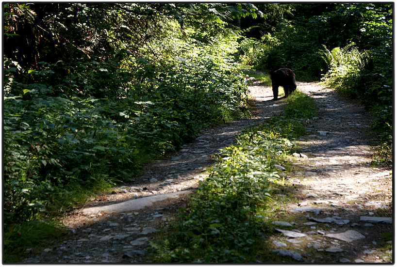 하산 길에 한 가지 해프닝이 있었다. 거의 다 내려와 파워하우스 로드에 닿기 직전의 임도에서 베리를 따먹던 곰 한 마리를 발견한 것이다. 배를 채우던 이 녀석도 갑작스러운 내 출현에 놀란 표정이었다. 홀로 산행에 나섰는데 곰과 20m 떨어진 거리에서 1:1로 대치하다니 운이 없다는 생각이 들었다. 가장 먼저 한 일은 배낭에서 카메라를 꺼내 곰 사진을 찍는 것이었다. 행여 나중에 무슨 일이 생기면 그 이유를 알리고 싶었다. 베어 스프레이(Bear Spray)를 꺼내 한 손에 쥐고 천천히 뒷걸음을 치기 시작했다. 한데 곰도 내 방향으로 계속 걸어오는 것이 아닌가. 난감한 상황이었지만 곰이 달려들거나 적의를 보이지는 않았다. 그렇다고 등을 보이고 냅다 도망칠 수도 없는 일이라 100여 미터 뒷걸음을 치다가 오른쪽 숲으로 들어가 몸을 숨겼다. 덩치가 큰 나무 뒤에 숨어 15분 숨을 죽이고 있다가 길로 나오니 곰은 흔적도 없이 사라지고 없었다. 십년 감수한 느낌이었다.